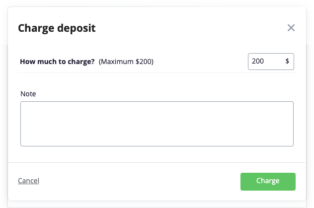 In the pop-up, you can select the exact amount you want to charge and add a note.