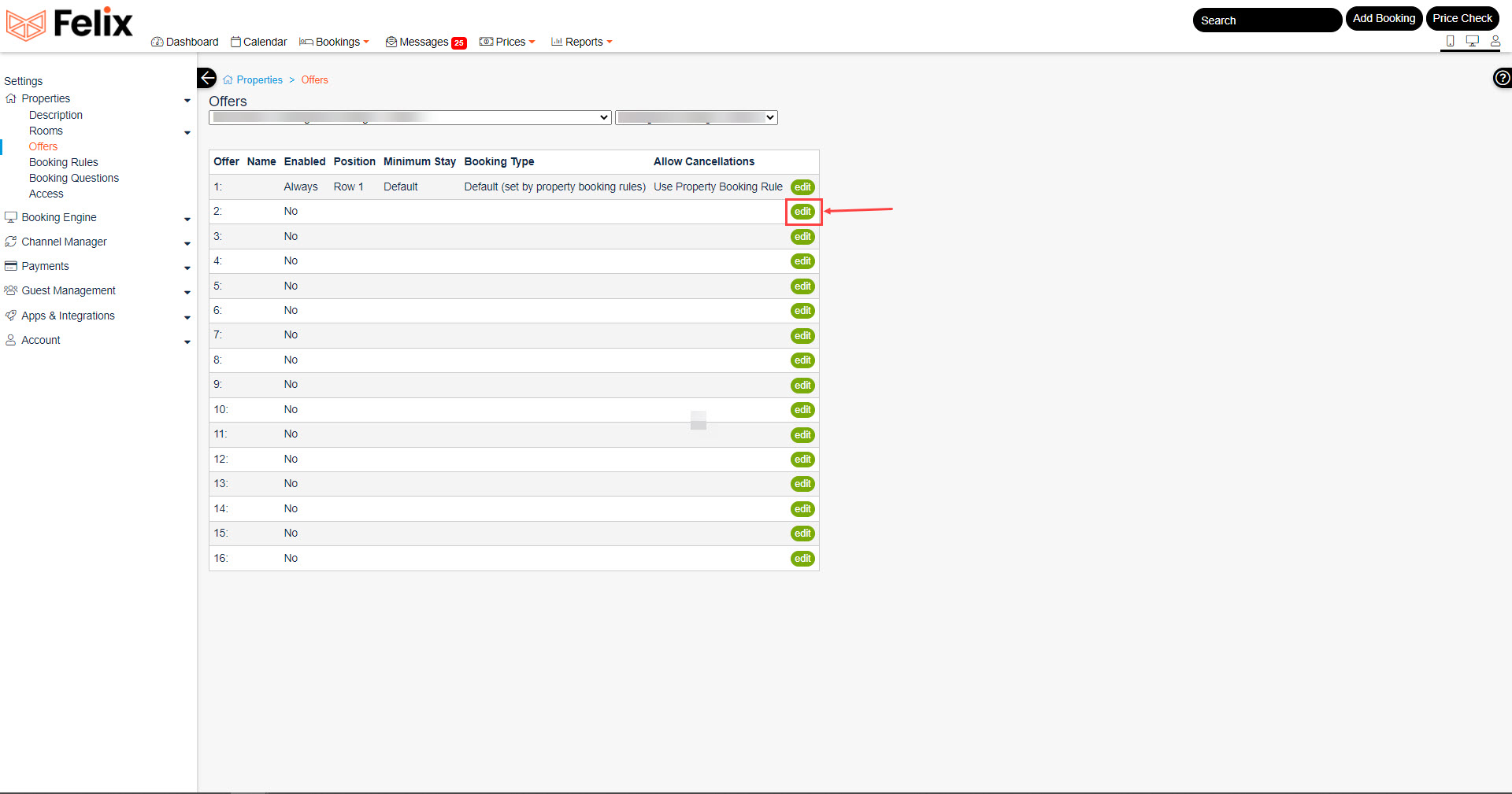 Press the ‘Edit’ button at the end of the offer number 2 row.
