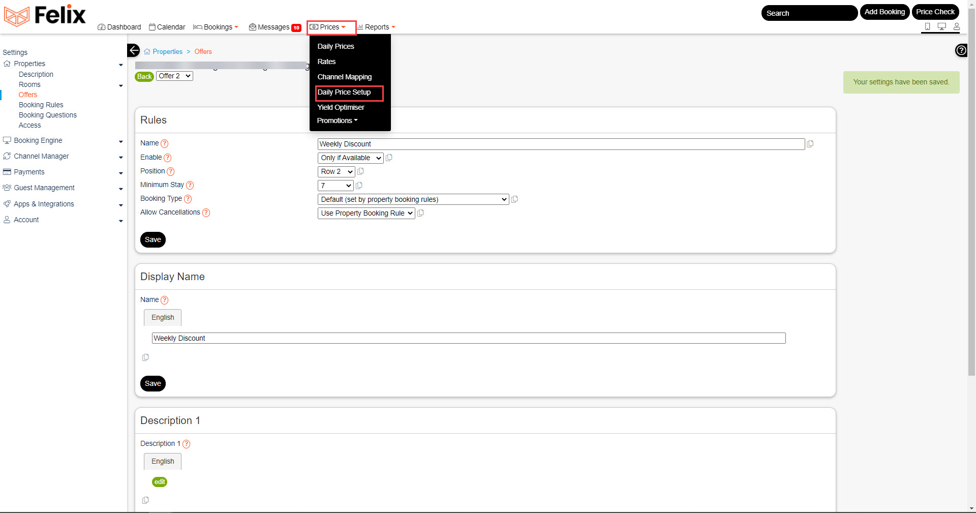 5. Finally, enter a display name that will appear on the booking engine, eg. ‘Weekly Discount’ or ‘Weekly Price’.