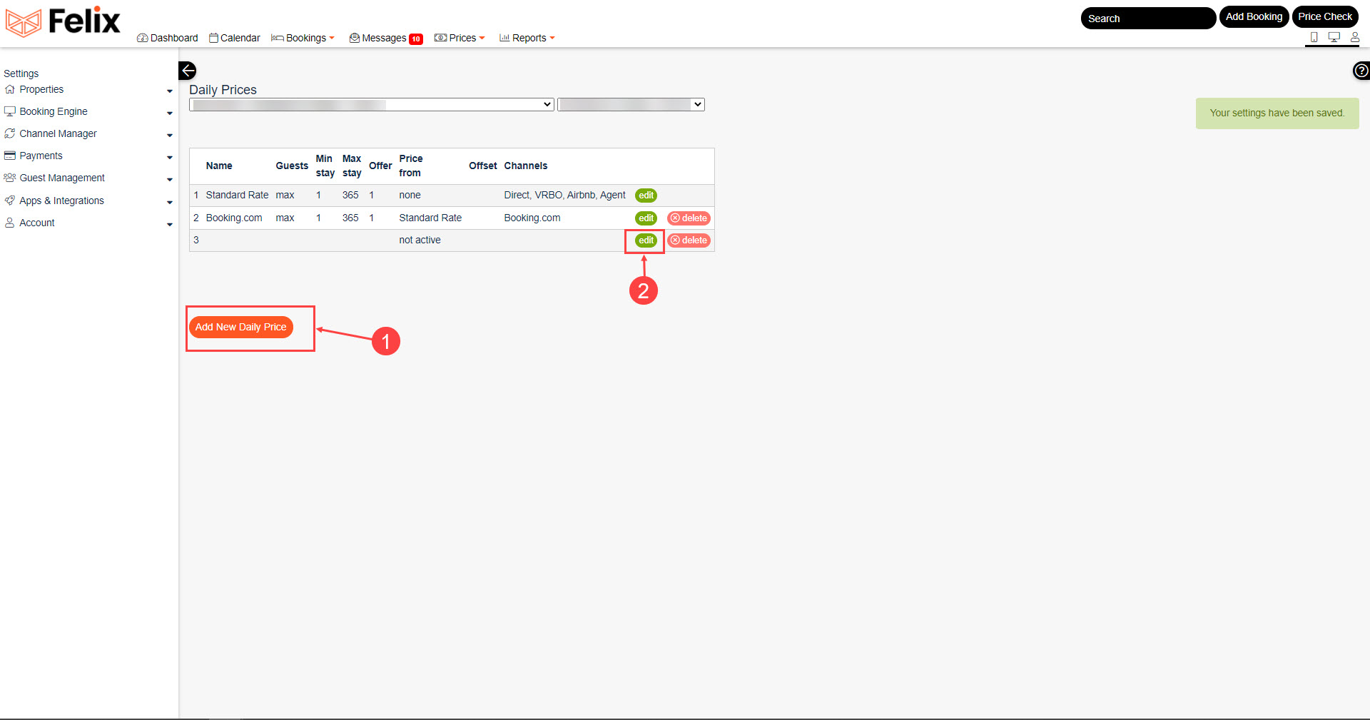 Click on the ‘Add New Daily Price’ button (or edit the template for weekly/monthly thats already there if it is), then click on the edit button next to the new price you have created.