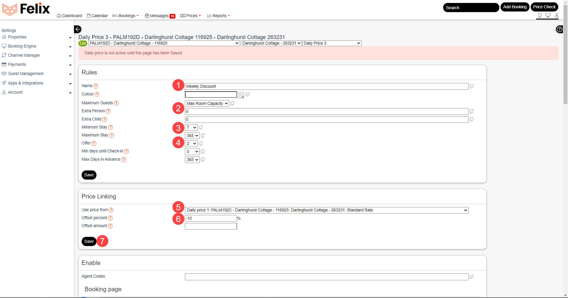 6. Enter the offset percent. In the below example we are offering a weekly discount of 10%, so we enter '-10' in this box to reduce the standard daily rate by 10%.