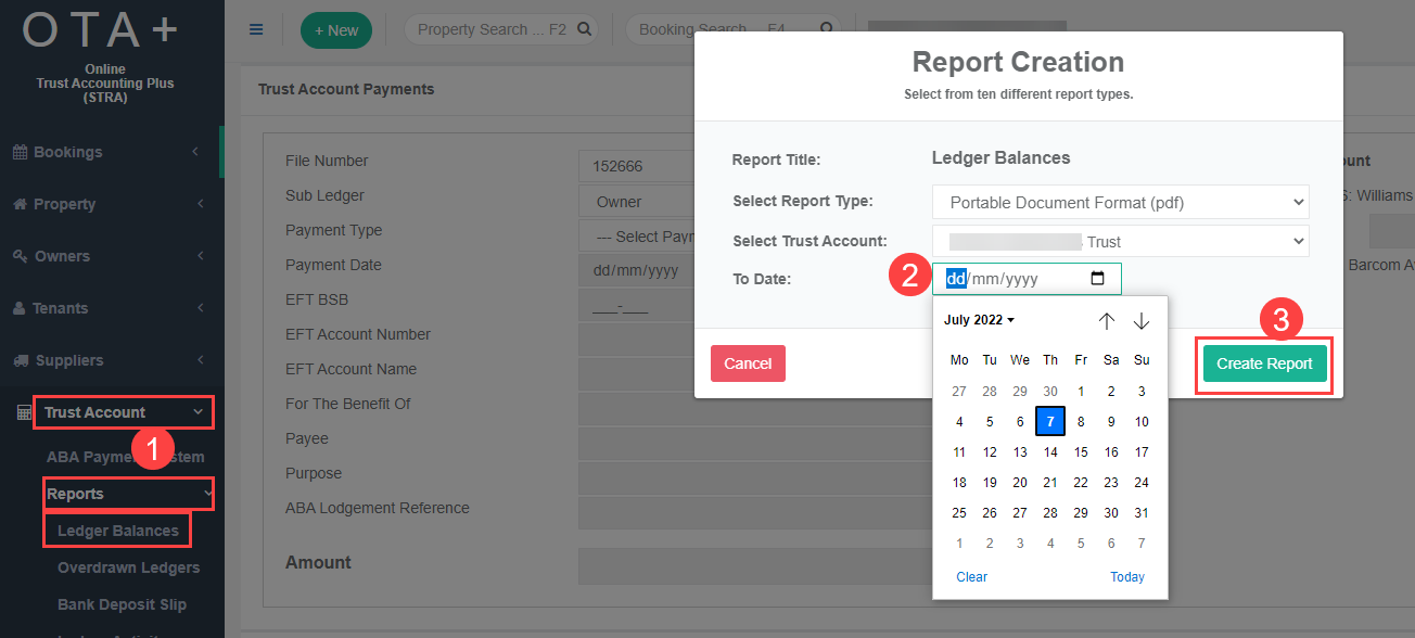 Once all transactions have been posted and highlighted on your csv file, you will need to perform a ledger balance report to ensure the balance in OTA+ matches the balance in the trust account.